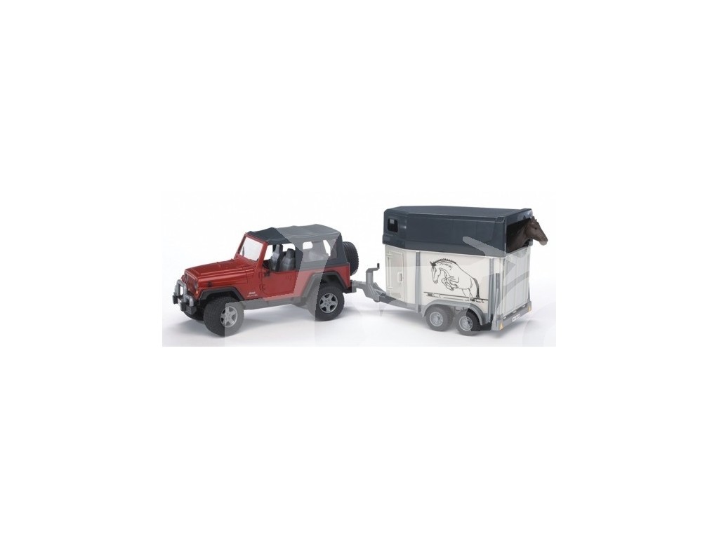 Samochód terenowy Jeep z przyczepką i konikiem